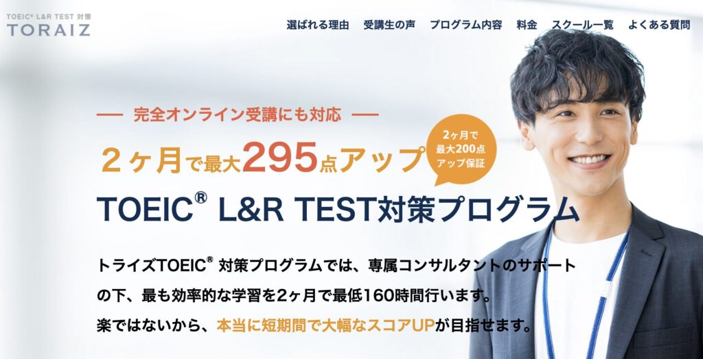 そんな方に知ってほしいのが、2ヶ月という短期間にTOEIC対策だけに特化した学習を行う専門プログラム「TORAIZ(トライズ)TOEIC L&R対策プログラムプログラム」です。